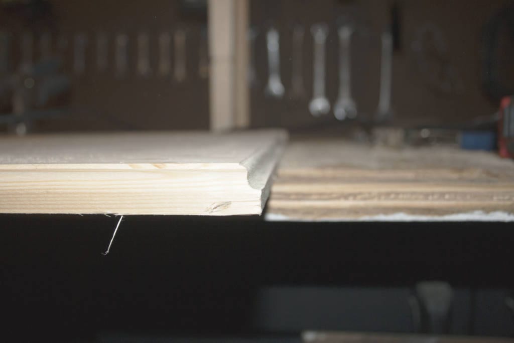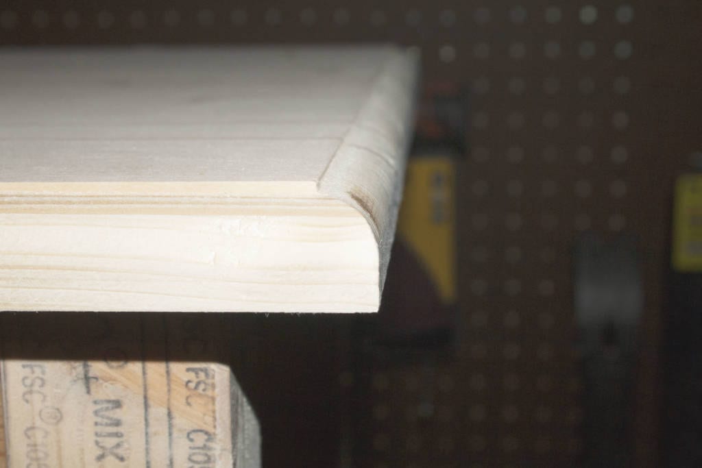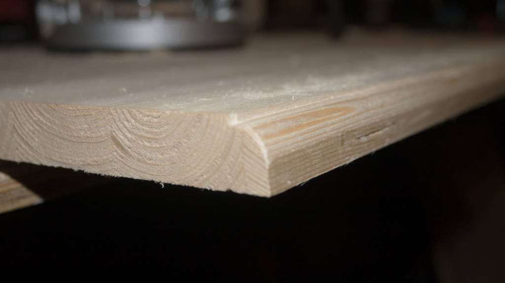 Before I cut the tabletop to size, I tested the roundover bits and the ogee to see what I liked best for the application. I decided to go with the roundover, but to add just a little style, I let the bit plunge just a little low to create a fillet around the top. Both the ogee and roundover bits of theย Ryobi 15-piece router bit set made beautiful edges and corners.