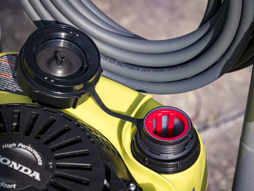 There arenโt any surprises when it comes to connections on this model. The source hose and high-pressure hose have standard connections that are simple to find and easy to use.