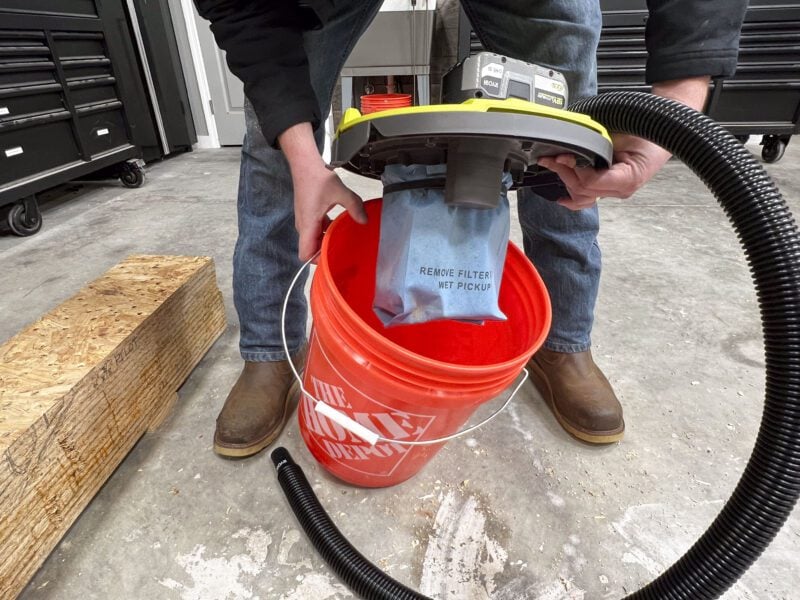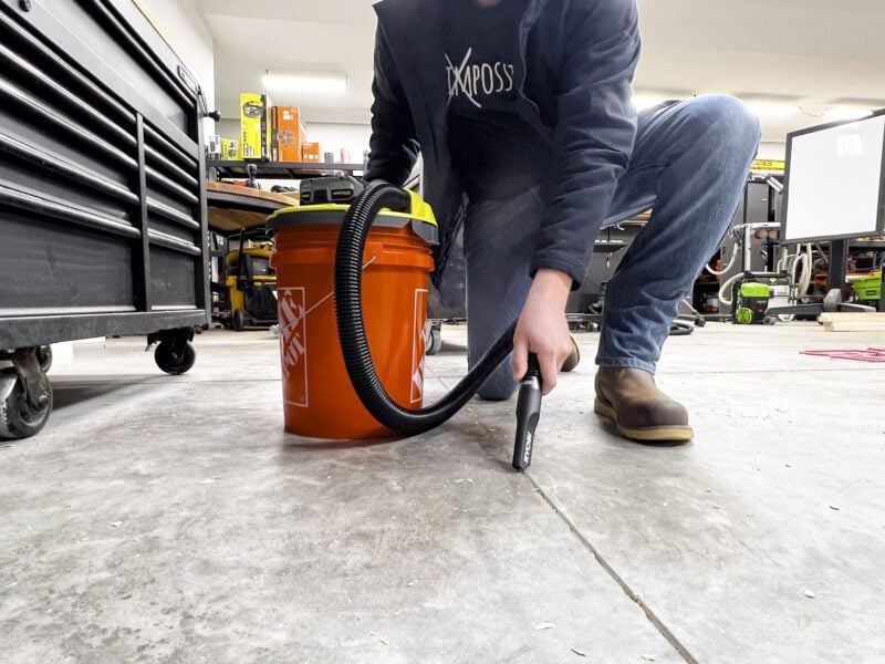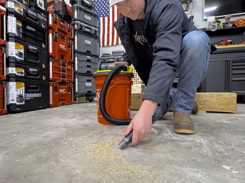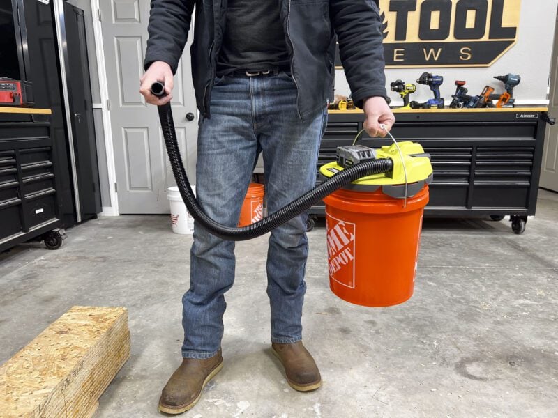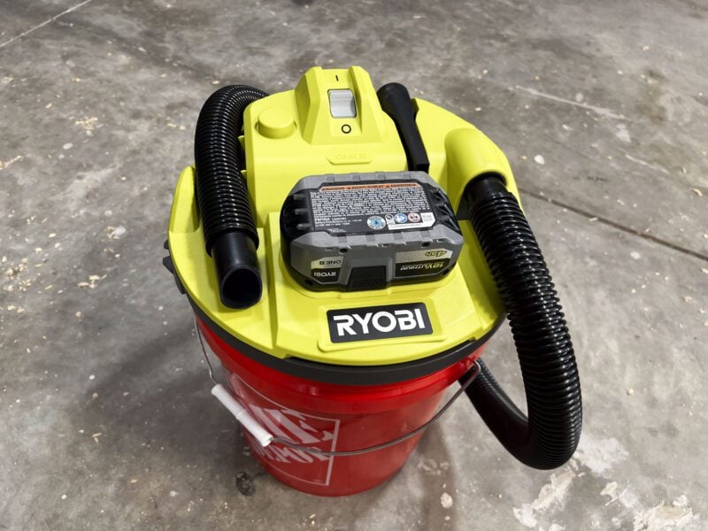 As I mentioned above, Ryobi is no stranger to the wet/dry vacuum game, having a variety to choose from on the 18V One+ platform. This bucket-top model does things a little differently, though, since it uses any standard 5-gallon bucket as a canister. At the time of writing, Ryobi is the only major power tool brand to offer a cordless bucket-top vacuum.