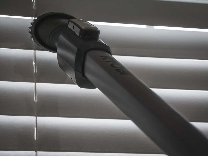 We also used the included dust brush to clean our blinds and pull dirt off the tops of our door and window trim. Swapping out accessories proved to be a simple task, and the release buttons are convenient and easy to operate.