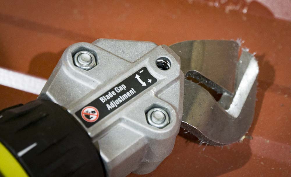 Thereโ€™s a bit of a learning curve if youโ€™re new to using a cordless metal shear. You have a jaw adjustment that youโ€™ll want to dial in before you start making your primary cuts. The jaws come set for thicker gauges, and we had to adjust it for the 26-gauge metal roofing we were working on.