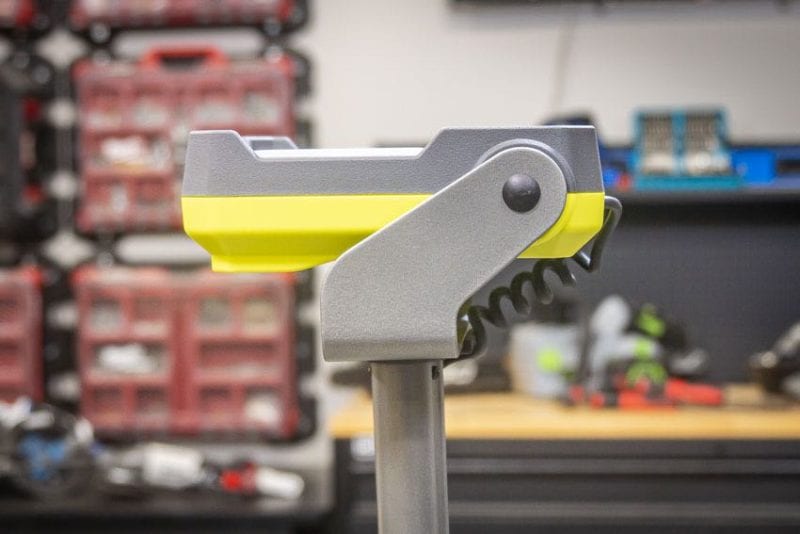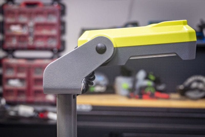You can pivot the lighting head 310° to light from multiple angles. But it’s not just the lighting head that adjusts. Ryobi placed that adjustable LED head atop an extendable pole. At its tallest, it stands 5-feet high. When lowered, it hangs out at 3-feet. However, it can also collapse down to a mere 22-inches, with the legs and tower pole locking into place for easy transport. It even has a helpful carrying handle.