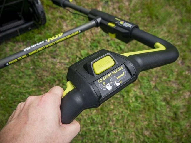 We like the idea of Ryobiโ€™s Smart Trek drive, but it is a change that takes time to get used to. It works like this: as you walk forward, you sort of naturally press in on the spring-loaded handle. This is your throttle โ€“ the faster you walk, the more youโ€™re pressing in on the handle and the faster the mower drives forward.