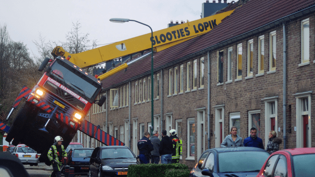 In the Dutch town of Ijsselstein (yeah, I don’t really know how to pronounce that), a man devised a creative way to propose to his girlfriend. In a serious case of “it seemed like a good idea at the time”, he got his hands on a crane. Yep, a crane. The intention was apparently to lift himself to his lady’s window to pop the question. Instead, he popped through the neighbor’s roof. Nope, not the way you may be imagining. It wasn’t a case of “I hit the wrong lever and went through the window”. The crane actually tipped over onto, and through, the roof.