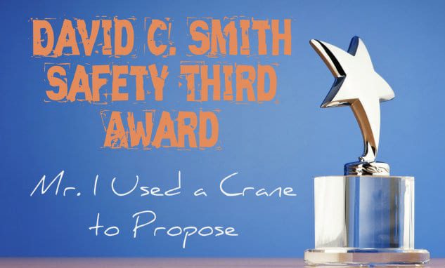 We raise our glass to you, Mr. “I Used a Crane to Propose”! You’re the second winner of a David C. Smith Safety Third Award! Keep up the good work, and be sure to wear a helmet to the wedding… after all, what could possibly go wrong?