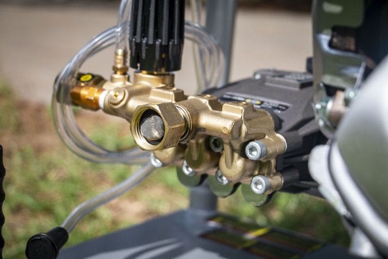 The pump choice is a quick way to judge the difference between professional and residential pressure washers. Pro models use a triplex pump while the lighter-duty models typically have an axial cam pump.