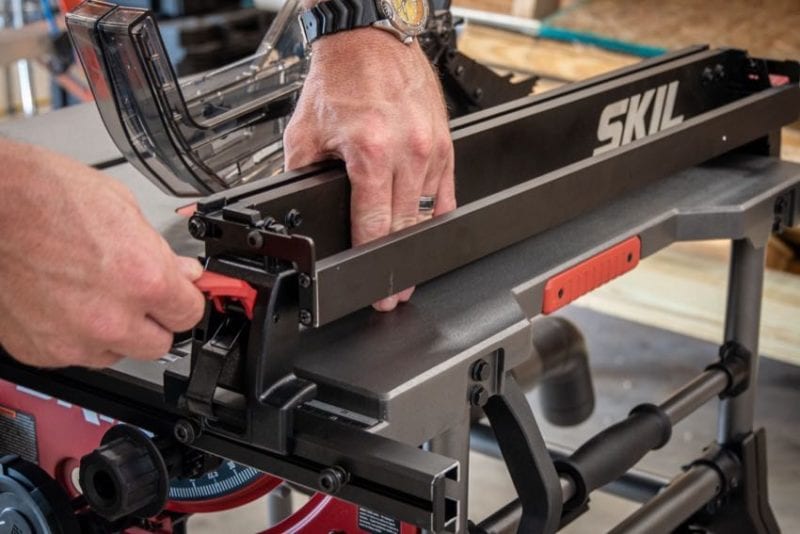 One of the really big deals about the Skil 10-inch jobsite table saw involves its integrated stand. Instead of detaching from a stand, it features foldable legs. These proved to be plenty easy to fold down and lock into place by just one person.