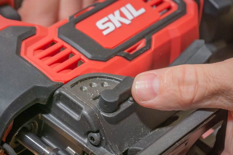 Keeping the cutline clear and visible is essential for maintaining a precise cut. Skilโs dust blower works well, and it has the bonus of an on/off switch on the side if youโd prefer to turn it off.