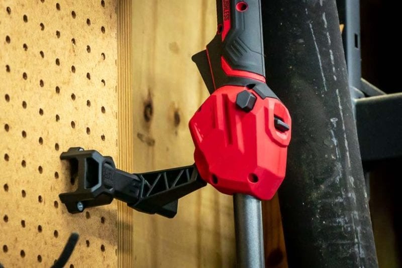We really appreciated the Easy Storage Bracket and integrated hanger hold that comes with the PWRCore 20 lawn and garden tools. After mounting the bracket to your wall, you can hang the Skil 20V String Trimmer up to save floor space and keep your shed or garage organized.