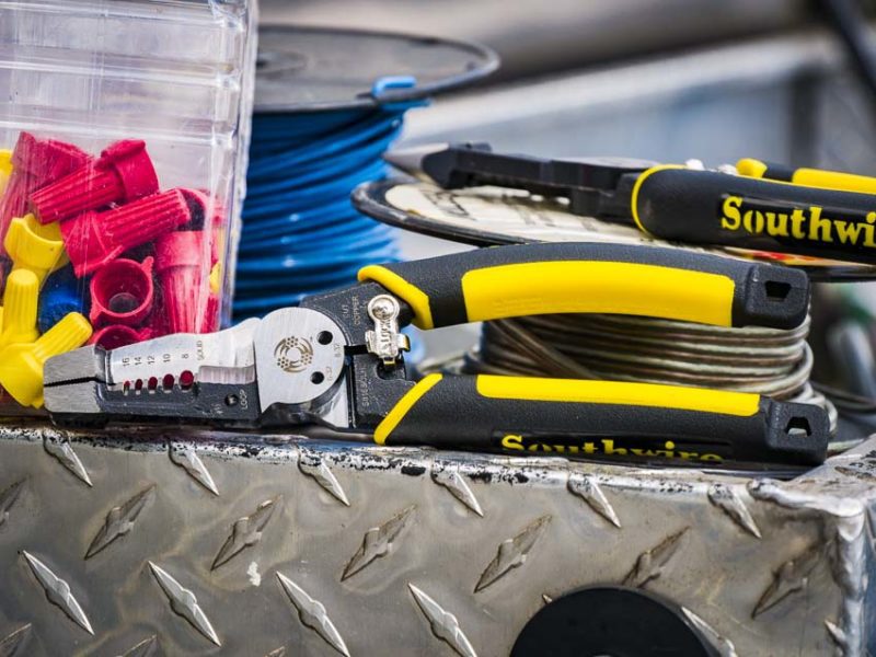Given the heft of the wire stripper’s forged steel, the tether loops are a must when working overhead. Southwire puts one at the end of each handle and you can decide if one works better than the other for you.