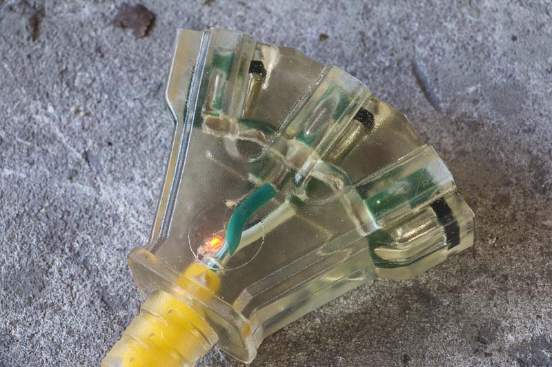 The SJTW Yellow Jacket cables are UL and cUL listed and each contains a quick-check neon power indicator that lights on the female end when the extension cord is plugged into a live circuit. The cords have aย NEMA 5-15 plug, which means theyโ€™re grounded and rated to 15-amps when used with a 125V circuit. The plugs grab really well, and we were able to plug them successfully into both 15 A residential and 20 A commercial outlets without them โ€œsagging outโ€. Considering these cords are fairly heavy dutyโ€”that matters.
