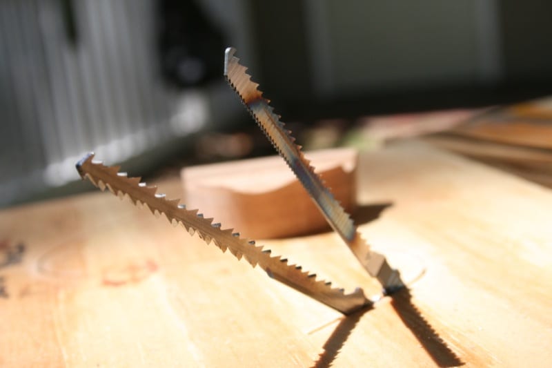 David: Well, the blades I typically use cost about $2.88 for a 3-pack and they get the job done, but for more detailed work or a smoother edge, the Spyder blades, even at $10 are pretty compelling. Itโ€™s almost like you get a two-for-one deal, cutting and sanding. And you can really push the radius tight because the backside blade cleans your cut as you go. When I flipped over the wood, the bottom of the piece was absolutely pristine. If you can reverse-cut your wood upside down youโ€™re going to have an almost flawless finish on that edge. These are nice blades, Iโ€™ll give them the old recommendation.
