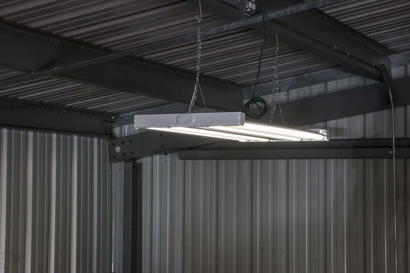 Other than outlets, the only other electric needs in the shop were the overhead bay lights and the LiftMaster Elite Series garage door openers to raise our insulated Clopay commercial shop doors.ย We ran one circuit for the lights, since they will eventually be LED products, and one circuit for the twoย LiftMaster door garage openers.