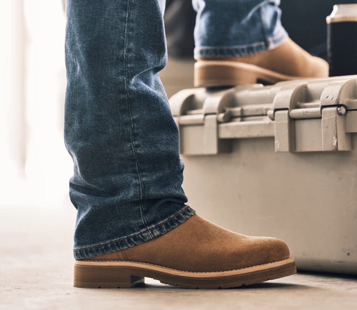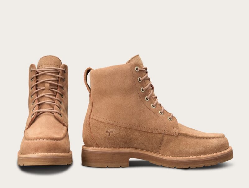 The Rugged Moc boots come in two colorways: Natural (roughout) and Saddle (cowhide).