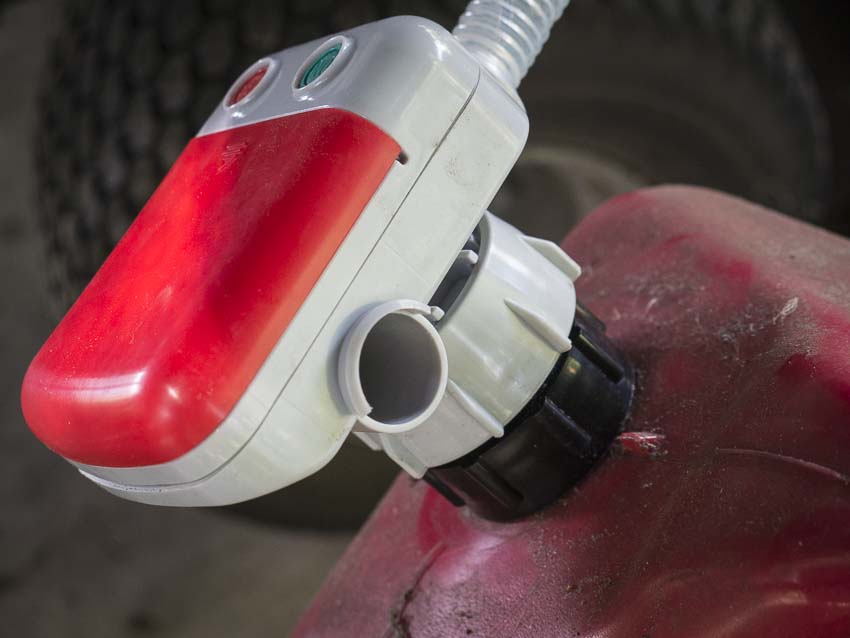 The TeraPump self-primes and has an automatic shutoff system that worked pretty well (unless you didn’t follow the above rule and the hose dumped the remaining gas into the destination tank, overflowing it a bit). When you get done, there’s a handy place to store the delivery nozzle, which also prevents evaporation and contains the gasoline. You can leave the siphoning end of the TeraPump in the gas can, but you don’t want the delivery nozzle to stay in gas as it could cause premature failure of the automatic fuel shutoff sensor.