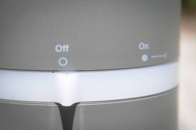 The Halo has a white ring with a tab around the middle of its body. This is both the ignition system and ZoneCheck Monitor. The ignition of my smaller Thermacell is simple. You simply turn the switch to ON, press the button, and โ€œclick!โ€โ€”we have ignition.