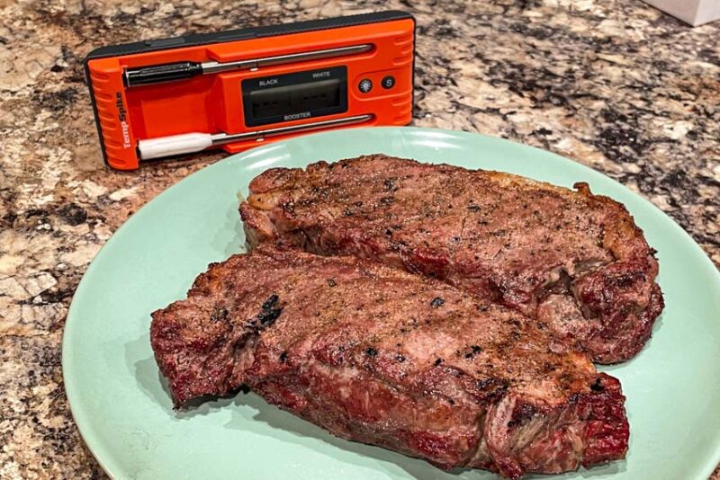 In my experience, the thermometers were reading low, so on something like a New York strip, I might need to pull it 5ยฐ earlier than normal, whereas a brisket might be 10ยฐ. My results were consistent, so it was just a matter of learning the toolโs characteristics.
