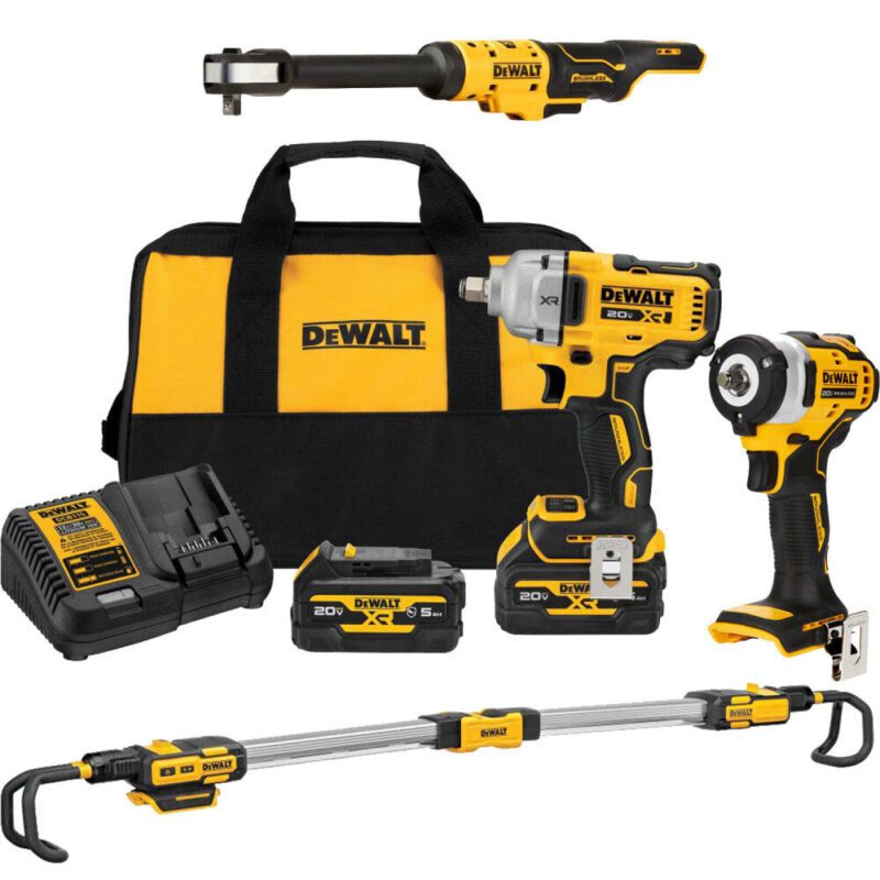 So, what comes in the bundle? It includes four DeWalt power tools to get your auto mechanic arsenal started. You get: