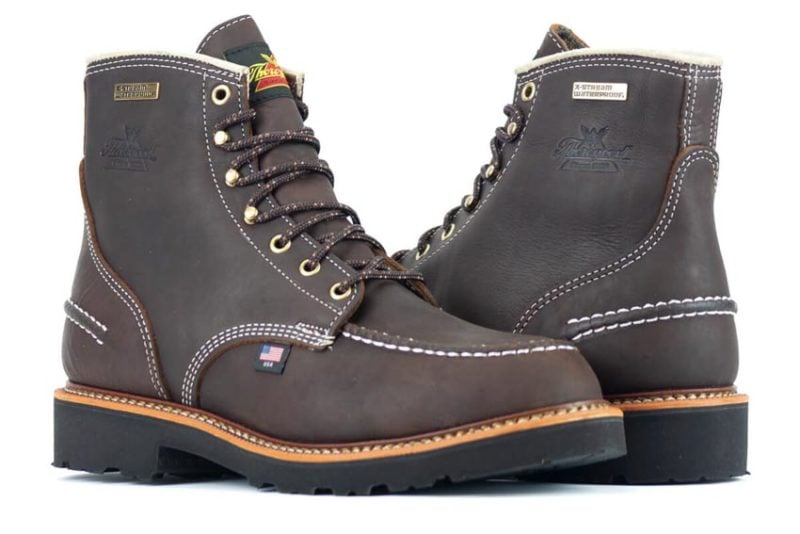 All of the boots in the Thorogood 1957 Series lineup are waterproof, featuring X-Stream waterproofing. The full-grain leather itself is waterproof and then thereโ€™s a waterproof membrane liner.
