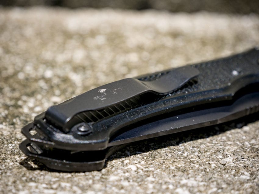 The clip is reversible. Switching sides for left-hand users doesn’t leave it in the way of the deployment button, though you have to carry tip up.