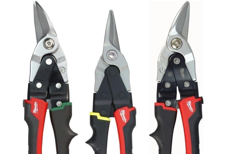 Some Yellow straight snips come with an offset. Tools like the 45-degree Milwaukee offset snipsย place the handle up and out of the way of the cut. These are highly desirable and my preferred type for making lengthier cuts in sheet metal.ย Everyone should have at least a two-piece set of snips in their shop, shed, or tool bag.