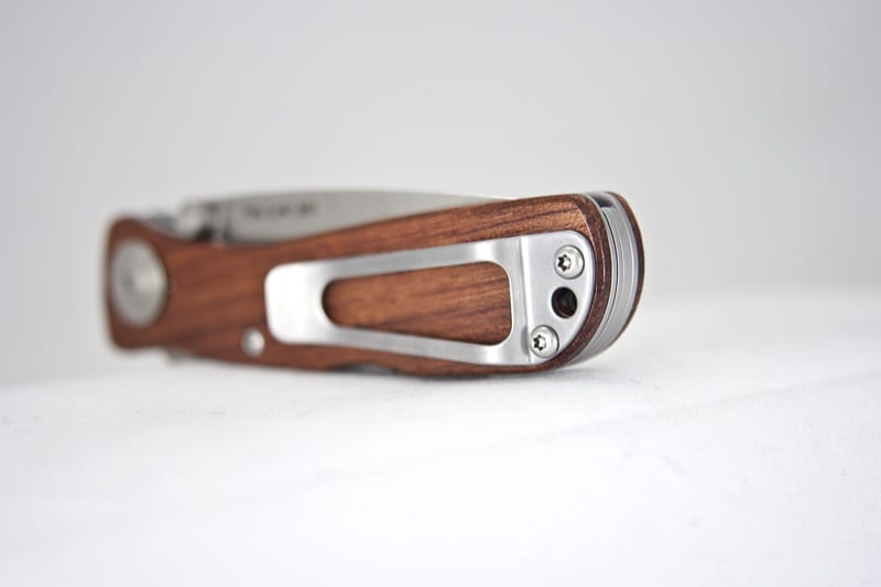 This might surprise you, but people who work at churches donโt normally carry knives, much less write knife reviews. So you can understand my dilemma when I walk into a meeting with fellow parishioners carrying a knife that could be used to take on angry muggers in a back alley brawl. I, for one, love carrying a knife that could skin an elephant, but people in my office may not take too kindly to a knife of that size. You see, sometimes itโs nice to carry around a sophisticated and less intimidating blade that isnโt as utilitarian asย something likeย the SOG PowerDuo multi-tool. But at the same time you donโt want a sissy knife! You want one that can handle your everyday carry needs. So whatโs a man to do if he needs a knife thatโs office-friendly? How can knife lovers maintain their hobby and also the security of their job? Let me introduce this little beauty from SOG: the Twitch II. If the small size and elegant lines werenโt enough, theย SOG Twitch II Rosewood Handle knife is also available for the ultimate sophisticate look.