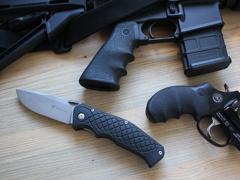 Itโ€™s the handle because it is quite unlike anything else I have in my collection or have held from another company. There may be other, similar offerings but I feel like this design and material selection is excellent. The handle has a familiar feeling that I couldnโ€™t quite place at first. If you are a fan of Hogue Grips for your firearms like I am, then youโ€™ll find the fiberglass reinforced nylon is a nearly identical feel. Just like the handle on my AR-15 and a .38 special, this knife gives such grip confidence that it will not matter if you have gloves on, wet hands, or zombie blood, it will not slip.