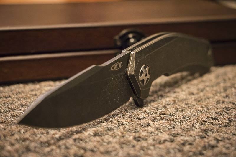 The gray Blackwash finish is excellent, and gives the surface of the ZT 0095BW an almost indestructible quality, with only the corner edges of the blade and titanium handle susceptible to marking. This is a knife you can carry anywhere without fear of it looking much different in a month or a year.