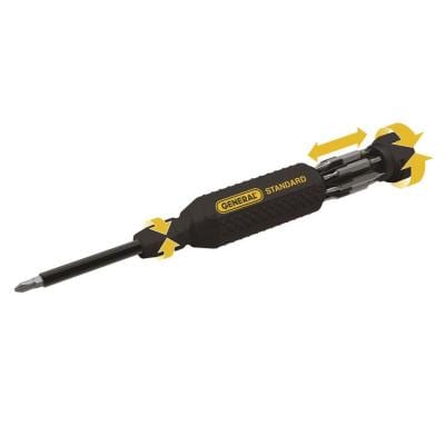 Remember that movie Jurassic Park? Thereโs a scene where the insider removing the dinosaur DNA is shown a shaving cream can that cleverly hides the vials in a retractable holder. General has done something very similar with these screwdrivers by designing a retractable bit holder that not only allows easy access to the bits but also holds them in place so that itโs much simpler to know youโre grabbing the one youโre looking for.