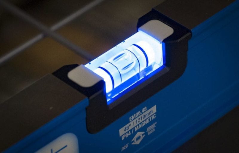 In broad daylight, without the LEDs turned on, the Empire Level em95.48 remains clearly visible from a variety of angles just like all of their TrueBlue level vials. The magic really happens when you turn the LEDs on.