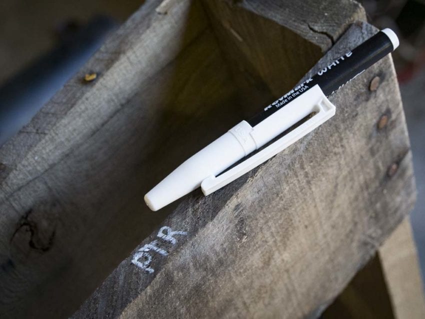 The RevMark white ink marker came in just in time to mark some cut lines and put identifying marks on a few tools. Writing on metal is very effective. Wood is a little tougher on the tip, but itโll make do better than a paint marker. Concrete is another material that you can write well on, though how often youโll need white may be in question.
