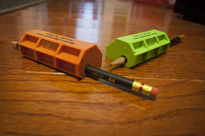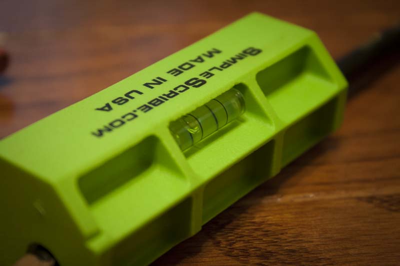I love simple tools.ย Even the name of this particular one, Simple Scribe, says it all. Itโs a scribing tool that doesnโt try to be more than it needs to be. (You wonโt find, for example, a wire strippers or bottle opener on it, though there is a handy bubble level.) The Simple Scribe lets you scribe a line along a piece of wood, smooth or irregular, and trace an offsetย from between 1/4โณย and 1โณ in 1/8โณ increments (7 different scribing distances).ย If youโre attempting to cut or shape some wood trim to level it to a floor, or fit two vertical pieces of wood or paneling together (which are never quite perfectly flush), then youโll quickly understand why this little plastic scribing tool might be your new best friend.