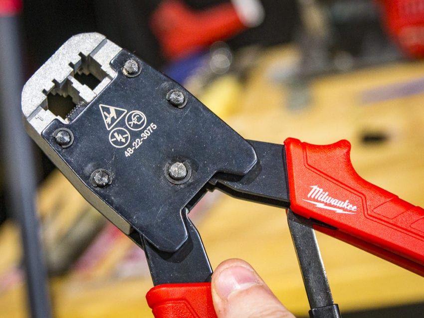 While this is my favorite tool of Milwaukeeโs VDV lineup, I miss having an integrated wire stripping blade when I use it. That said, Milwaukee has a spin stripper that I use instead. It means carrying around an extra tool, but the quality of the crimping I get done is worth the trade-off.
