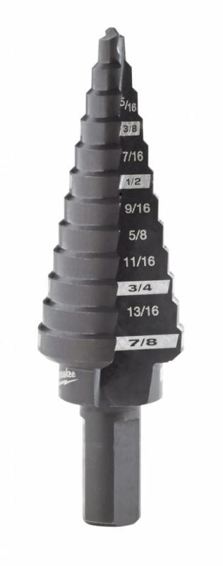 • 48-89-9208 โ€“ #8 Step Drill Bit, 1/2โ€ณ โ€“ 1โ€ณ by 1/16โ€ณMilwaukee Step Bit. 3jpeg