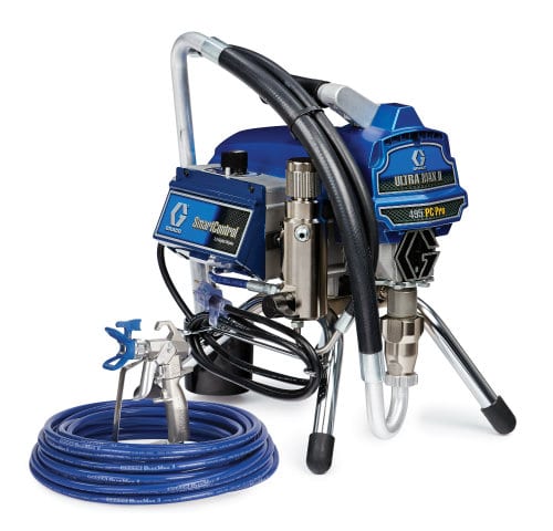 What they said:ย The Ultra Max II 495 PC Pro brings the leading technology and performance of Gracoโ€™s larger Ultra Max II models into a compact and lightweight design. The innovative ProConnect pump exchange system makes it easy to swap out a worn pump for a new one on the job site in three simple steps. No more time wasted or money lost to labor charges on pump repairs. The Ultra Max II 495 PC Pro is the sprayer of choice for professionals who need a higher output sprayer for daily use on residential jobs.
