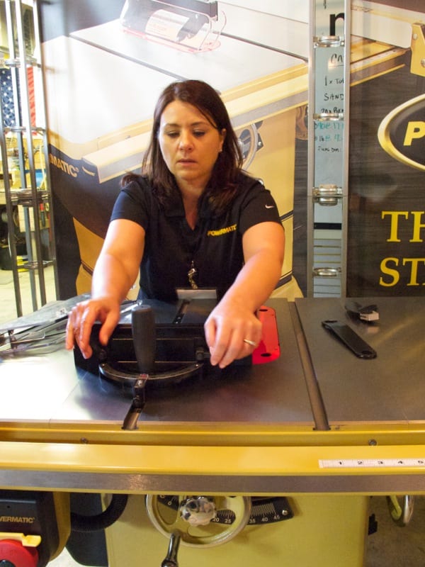 Joan Duvall, Director of Product Management, Wood, told us about Powermaticโ€™s new 120-volt table saw, the PM 1000. This product was not so much new as a PM 2000 light. While the 2000 requires 230-volts, the 1000 runs on 120V, so should be a great hit with the home shop crowd. It also does not have the 2000โ€™s nifty casters, which are deployed by a series of jackscrews connected to the tilt handle. Pushing the handle inward tilts the blade. Pulling it out operates the casters. I have used a PM 2000 in my own shop for some time now. My impression of the PM 1000 was that fit and finish were excellent. Eliminating the casters and going to a 120-volt motor gives this machine a more attainable street price of about $2,000.