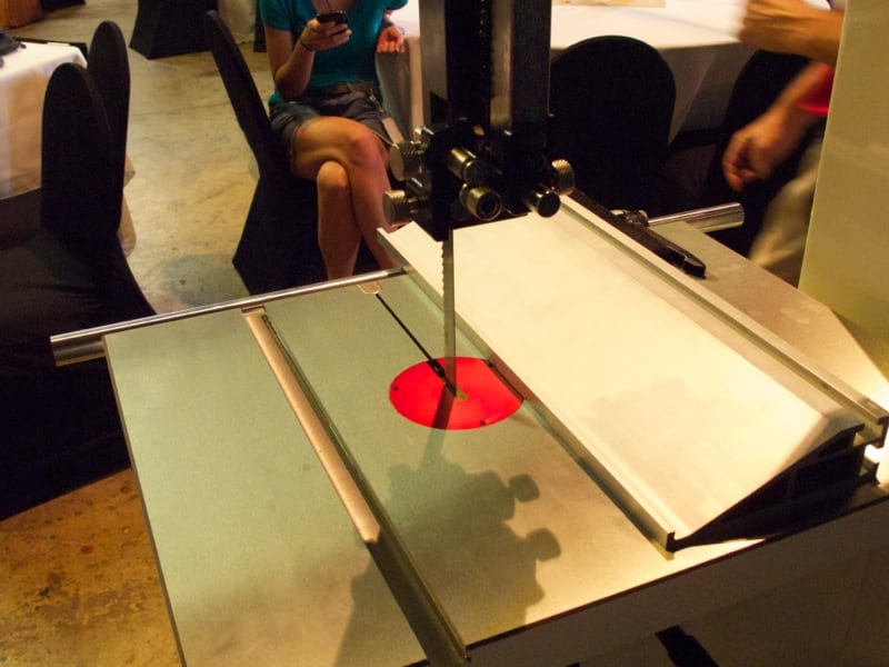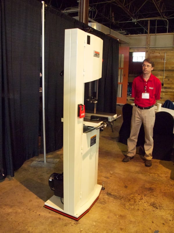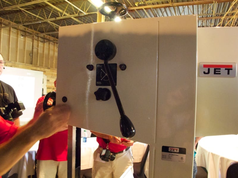 The hit with the press was Jetโ€™s new 14โ€ Steel Frame Bandsaw. (Well, 13ยฝโ€ actually but who is measuring?) With a street price of $1899, this machines offers a lot for the money. You get a welded steel frame weighing in at 356 pounds, a 1ยพ HP motor, tool-less blade adjustment, a quality throat plate with leveling screws, a solid fence, dual dust extraction ports, and a tension releaseโ€”all features that really impressed members of the press.