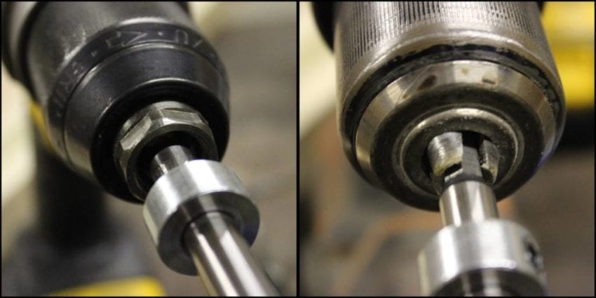 The DCD985โs standout performance was in hammer-drilling large holes for concrete anchors and in sinking self-drilling screws. I just finished a job where I had to drive dozens of #12 self-drillers through 1.5โ of wood into steel tubing, and the DCD985 put the RIDGID to shame. The 18v heated up after 10-12 screws and kept stopping mid-drive, battery still full, just too hot to keep going. The 20v easily powered straight through until I was done. The only drawback I noticed on the DCD985 was at the tip of the chuck: thereโs a hex nut that protrudes out and covers the chuck claws enough to make it tricky to index larger bits. Iโm sure Iโm not the only one who watches the chuck claws to make sure they land on the flat spots of the bit. You can still index it by feel, but my habit is to watch it as I tighten the chuck.