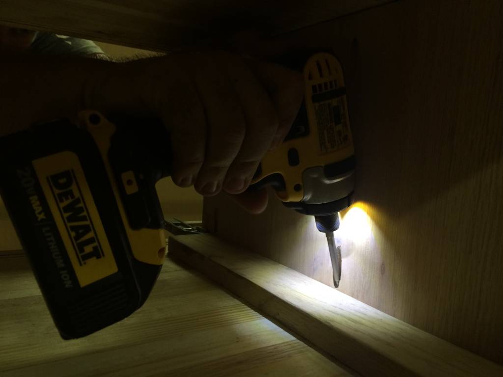 Here I am, about 5-6 weeks into steady use and my RIDGID 18v Li-Ion impact driver has started to collect some serious dust. The boost in power is substantial, enough that I debate waiting for the battery charge over grabbing the RIDGID. The DCF885 feels twice as powerful; it drives screws quite a bit faster and doesnโt get nearly as hot as my 18v. The three LED lights around the chuck are very brightโand for me, this is a pretty significant feature. While working inside a cabinet or with pocket hole screws, I found that the LEDs illuminated the screw head without any shadow whatsoever.