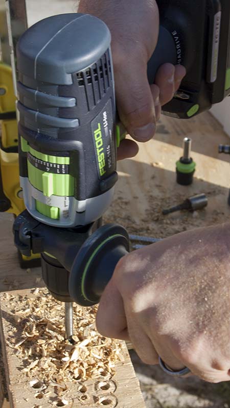 Festool designed the QuaDrive to still work well in the shop, but also gave it the tools to get out on the jobsite. To see how it would perform out where the big boys live, I put it through the same kind of tests we performed in our best cordless drill article. It had to show us what it is capable of when it comes to drilling, driving lag bolts, boring with spade bits, and cutting with hole saws.