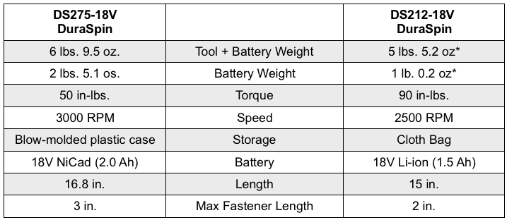 According to an ancient proverb, โYour strength is your weakness.โ This holds true for the older DuraSpin DS275-18Vโs ability to adapt to different fastener lengths. While a great feature, itโs a rather time-consuming process and requires a hex key (one of my pet peevesโsee my review of the DeWalt Cordless Framing Nailer in our April 2013 issue). There are days when I think any tool that requires a hex key should be tossed in the oceanโdrastic, but an effective Dexter-style elimination of an irritant.
