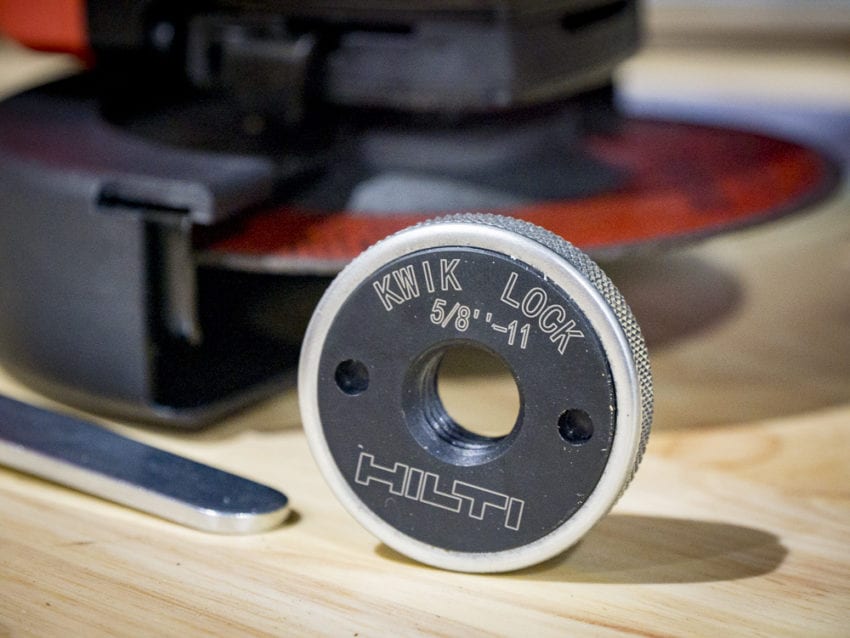 Speaking of features that are worth their weight in gold, Hiltiโ€™s Kwik Lock Flange gets a gold star from me. Since very few grinder actually store the spanner wrench on board (Kobalt is one that does), they have a tendency to go missing. With a Kwik Lock Flange, you can eliminate the need for the spanner wrenchโ€ฆ almost. Youโ€™ll still need to stick with the stock flange for thin cutting wheels.