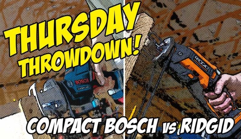 Within the compact reciprocating saw realm, there are two distinct classesโone-hand and two-hand models. It may not seem like a big deal at first glance, but there are pretty big differences in performance. For this Thursday Throwdown, weโre looking at the one-hand class. Itโs Bosch vs Ridgid compact reciprocating saw in a one vs one fight to the finish!