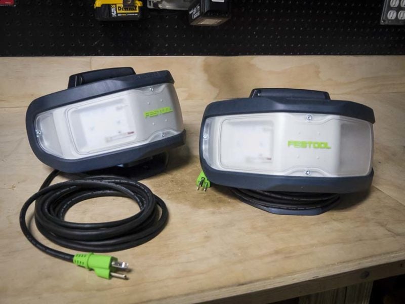 We actually have two Festool SysLite DUOs, and we use them as part of our tool review video production set, among other things. The lights have been very durable, and easy to manipulate. They also cast a nice, even light across our shop, supplementing the illuminationย from our LED T8 retrofitย lights and the solitary Big Ass Garageย Light. Compared to halogens that run hot and lastย only about 2000 hours, the Festool SysLite Duo trumps them all.