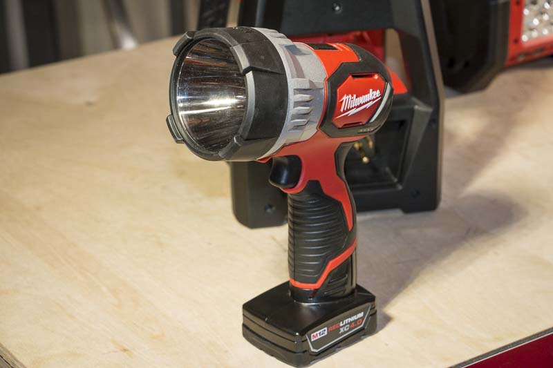 Also available in September 2015, the new Milwaukee M12 LED Spotlight also got some love, though itโs not as dazzling as the other offerings. It will, however, shoot a beam over 640 yards (700 lumens of output). That makes it my new gator-hunting spotter! The light is activated via trigger (both momentary and on/off modes), and itโs evenย IPX4 rated to make it water resistantโperfect.