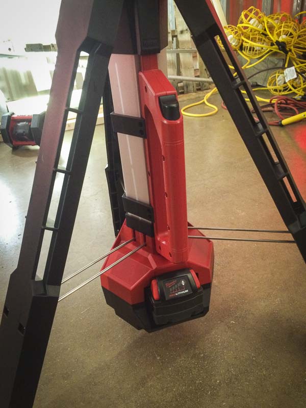 Durability has also been a focus, and Milwaukee has adapted their mechanical designs to protect this light from drops, bumps, and accidental damage.ย They kicked it over (while operating) more than once, and we didnโt see any evidence of damage. When packed up itโs virtually indestructible.