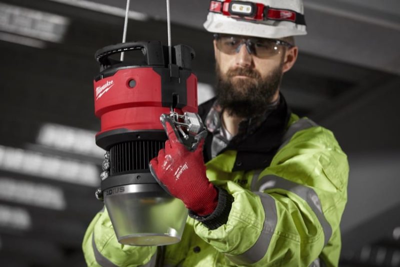 Joining their jobsite lighting lineup, the new Milwaukee Radius 130w LED Temporary Site Light installs quickly and easily, requires no maintenance, and blasts 15,000 lumens of the brandโ€™s TrueView high definition light.