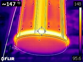 One benefit of LED lighting is cooler temperatures. The ProLight 360 makes it up to about 150 degrees, but not nearly as hot as a halogen.