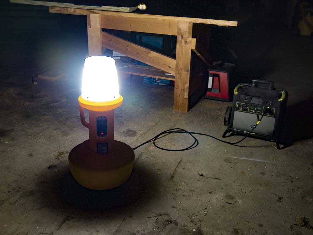 Southwireโs Wobblelight V2 LED Work Light offers a respectable 12,000 lumens of 5000K light. With its diffuser dome, it spreads the light 360ยฐ for spaces up to 60 feet or so (30-foot radius). That color temperature is perfect for giving you an accurate picture of whatโs around you and the LEDโs are rated for 50,000 hours of use.