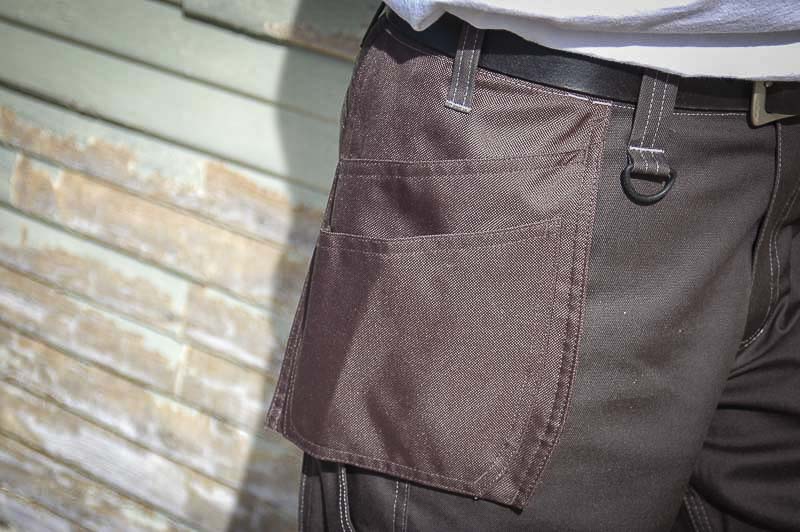 There are more pockets on this pants than a billiard hall. You have the expected front pants pockets, plus the polyester holsters with insets. Then you have the side pockets on the thighs plus back pockets to round it all off. On the knees are built-in pad holders that have an easy-access top flap that beats out any other system Iโve seen, including my favoriteย Blaklader Bantam pocket utility pants.ย All of the pockets have nice reinforcement and look like they can practically hold ย a lot without tearing.